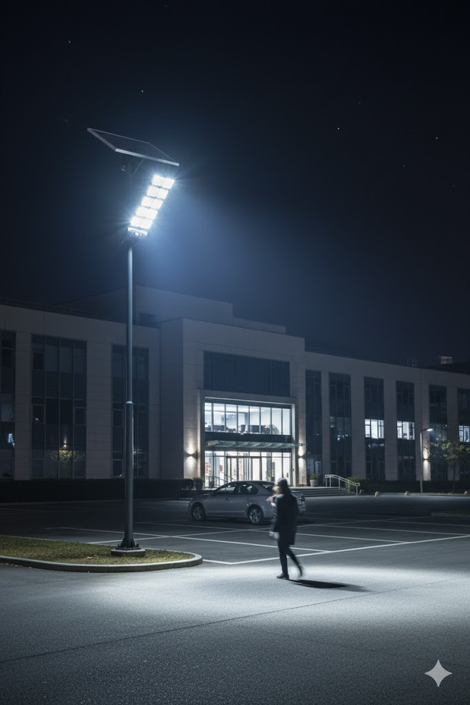 Ideală pentru curți, grădini, alei, parcări, fațade de clădiri sau zone comerciale, această lampă solară stradală îți aduce eficiență, siguranță și un design modern, totul fără efort și fără costuri de întreținere.